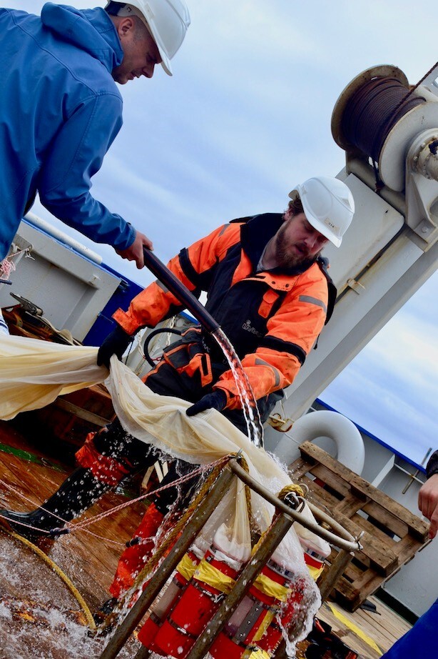 Er moeten in allerijl extra monsters genomen. In de laatste uren van de expeditie is het alle hens aan dek. Nacht- of dagdienst, iedereen schuift aan om de extra monsters die worden genomen te verwerken. En er is haast geboden, want er is ook nog storm op komst.