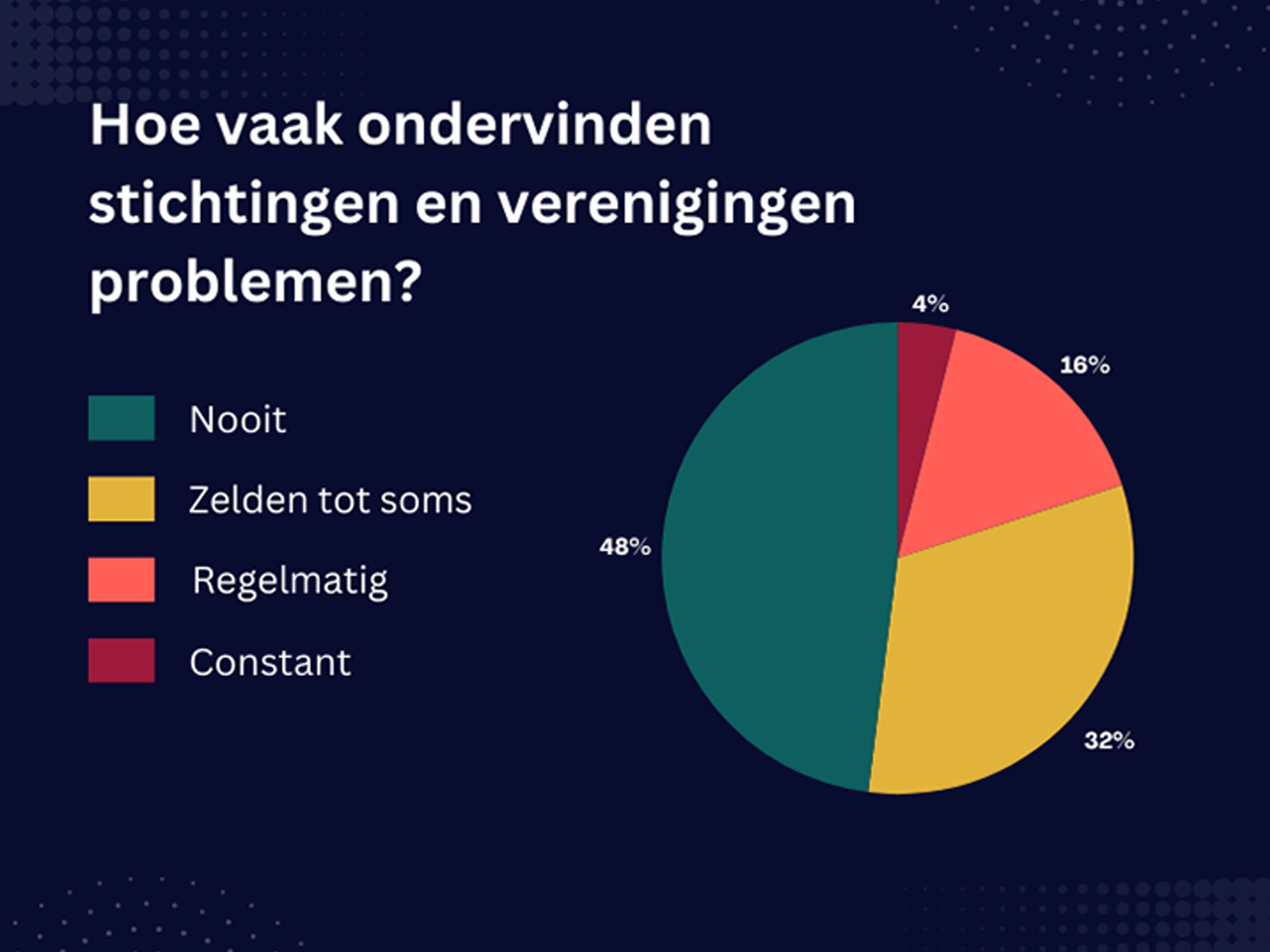 Uit het onderzoek, uitgevoerd door samenwerkende koepelorganisaties van goede doelen en vrijwilligersorganisaties en voor het eerst naar buiten gebracht door Argos, blijkt dat 52% van de respondenten problemen ondervindt met banken. Bij 20% van de organisaties spelen de problemen zelfs 'constant of regelmatig'. Zij hebben last van stijgende bankkosten, informatieverzoeken, een drastische stijging van administratieve vereisten, moeilijkheden bij openen van een rekening en zelfs weigering of sluiting van de rekening.