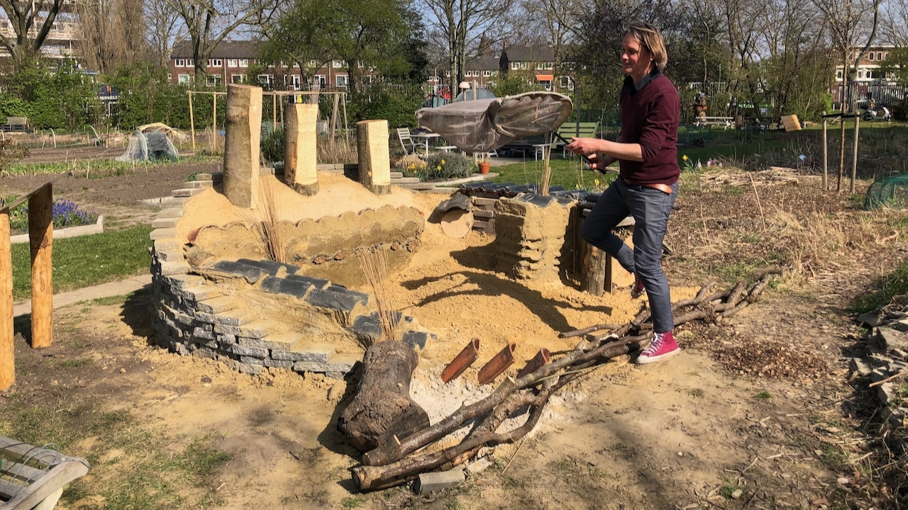 Maar het merendeel van de solitaire bijen in ons land bouwt een nest in de grond. Dat is niet altijd makkelijk, in ons aangeharkte land, waar bovendien zoveel stikstof uit de lucht komt dat ieder stukje kaal zand bijna direct vol groeit. Daarom bedachten bijenliefhebbers in Utrecht de bijenburcht. Naast de gebruikelijke blokken hout met gaatjes en bossen bamboestokjes, bestaat die burcht ook uit een mengsel van zand en leem: lekker stevig, zodat gravende bijtjes hun holletjes niet meteen zien instorten!