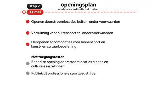 Het tweede besluitmoment is 3 mei. Bij groen licht is er dan vanaf 11 mei meer mogelijk voor sporters en voor de cultuursector: