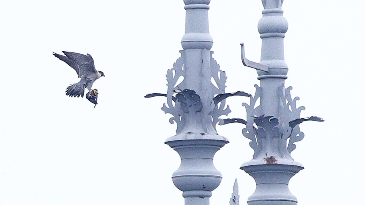 Slechtvalk met prooi op het Rijksmuseum. Foto: Roely Bos