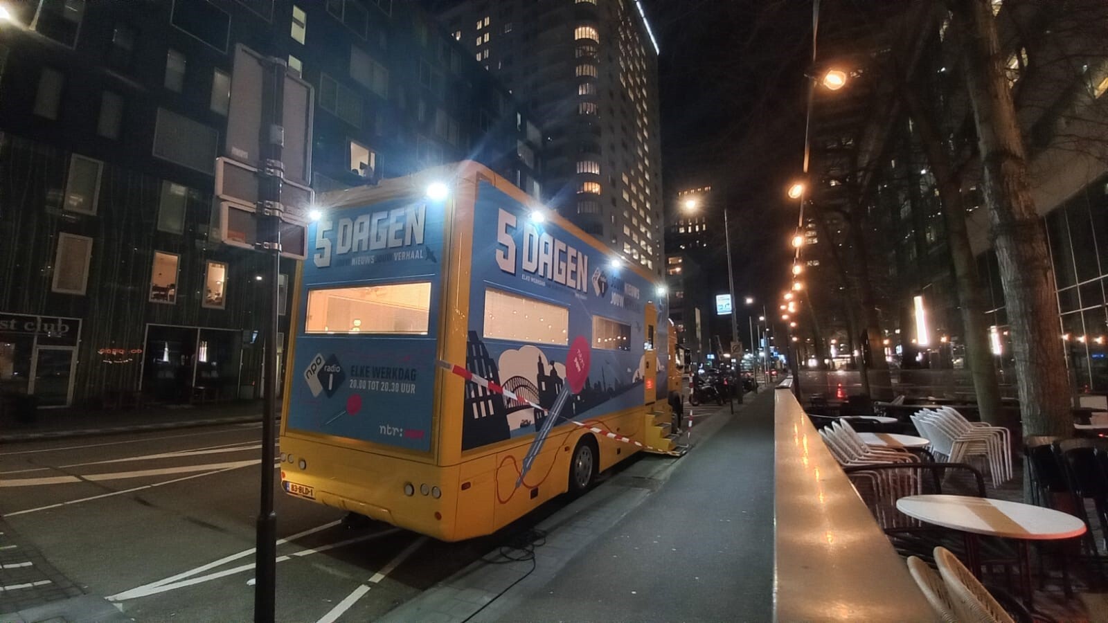 Presentator in de bus is Jo van Egmond (op vrijdag Ajouad El Miloudi). Verslaggever ter plekke is Mirthe van der Drift.