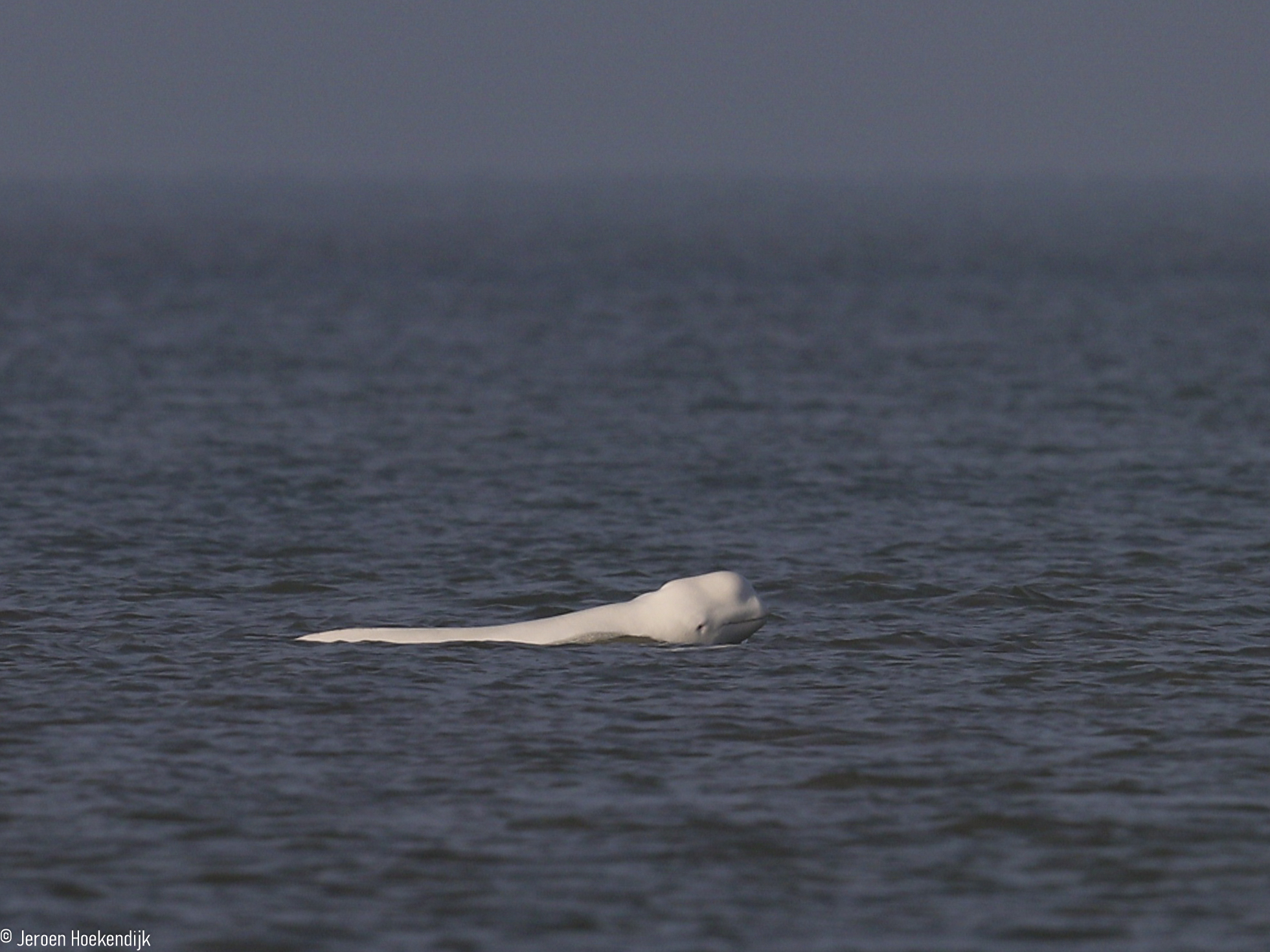 Normaal gesproken is de beloega echt een groepsdier, maar het dier aan onze kust is helemaal alleen. Toch lijkt de walvis volgens Hoekendijk in een gezonde staat te zijn. "De beloega blijft lang hangen op hetzelfde stukje zee, waarschijnlijk terwijl het dier jaagt op vis", zegt Hoekendijk.