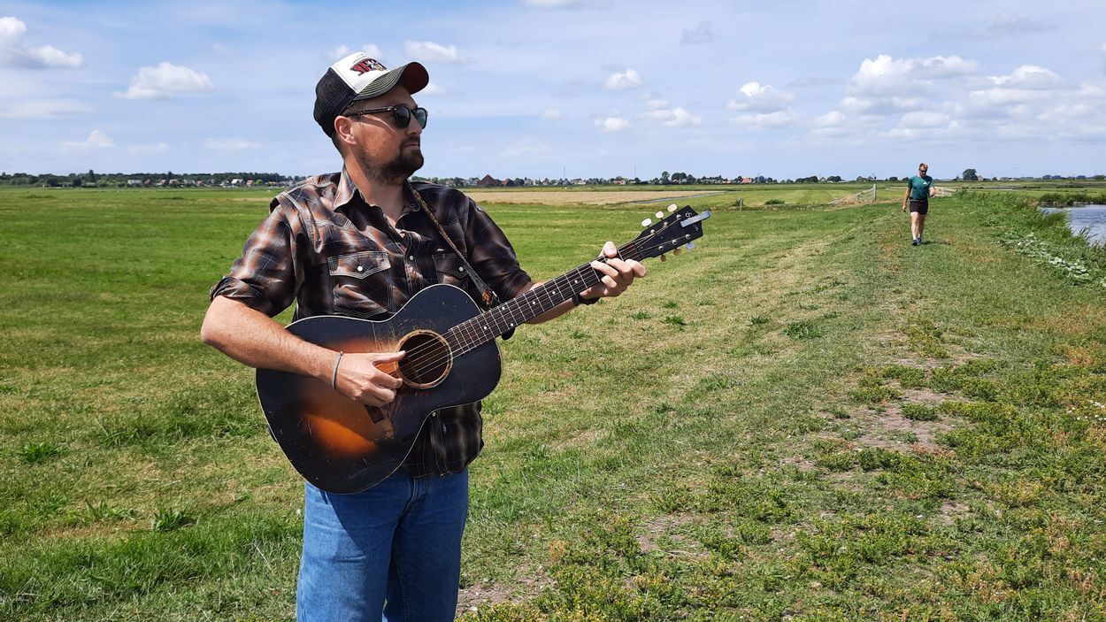 Muzikant Tim Knol op een muziekwandeling in natuurgebied Jisperveld© Jeannette Parramore