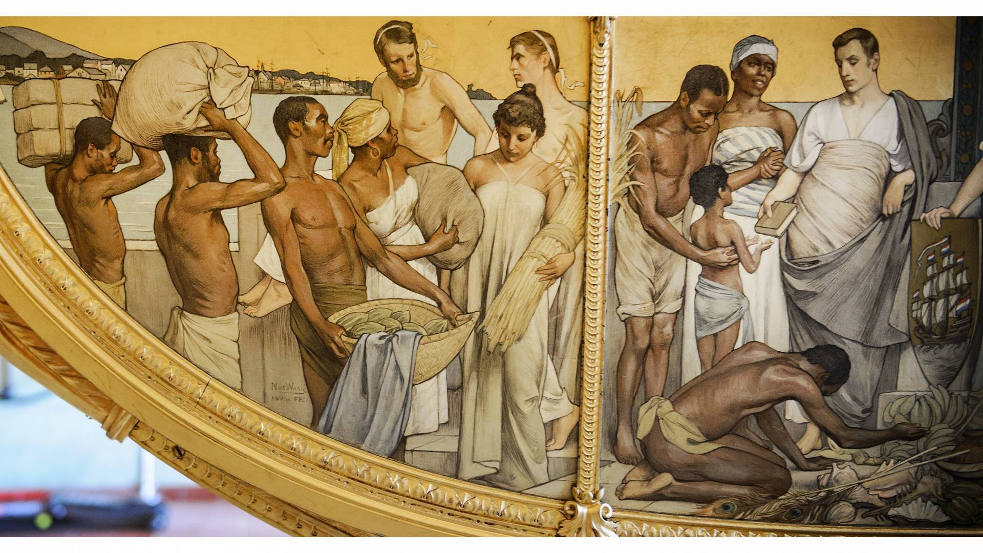 Detail van het omstreden zijpaneel 'Hulde der Koloniën'