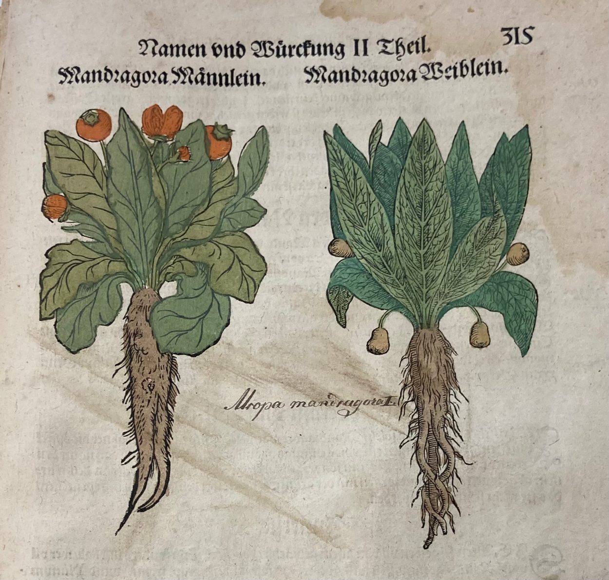 Een voorbeeld is de alruin. De wortels van deze plant worden vaak getekend als een klein mensje, en deze plant zou dan ook de mens in zijn geheel gezonder maken: de geest dus. Deze plant komt terug bij zowel Fuch als Bock. Deze plant werd verkocht tegen psychische problemen en was best wel kostbaar. Sommige handelaren verzonnen een trucje om klanten te trekken. Ze kerfden een mensenlichaam uit de wortel en lieten hem vervolgens nog een aantal dagen in de pot staan zodat hij weer wat wortelhaartjes kreeg. Met een harig mensenfiguur aan de plant als gevolg.