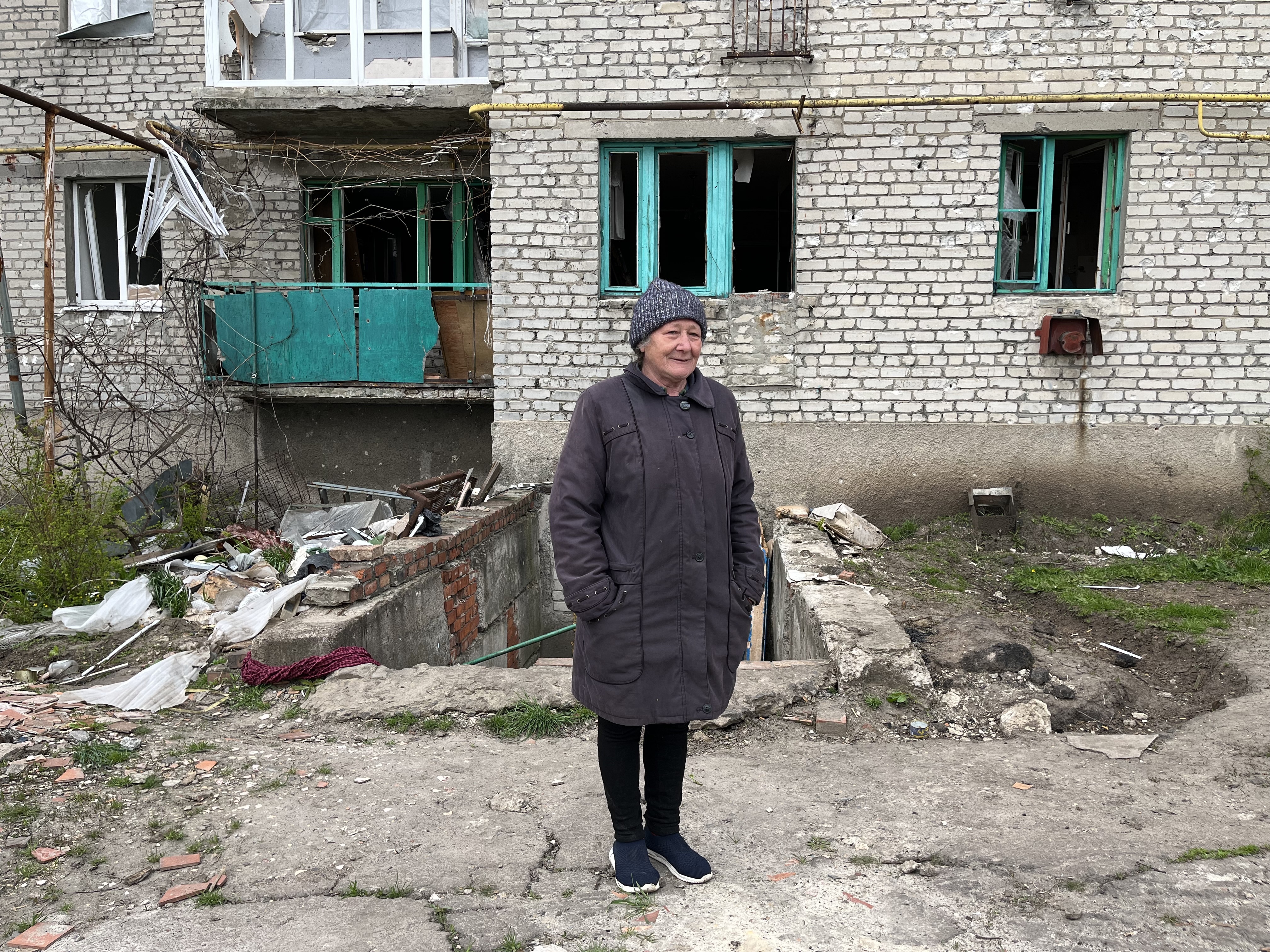 Op straat komt Michiel Driebergen Tamara tegen. "Ik heb me speciaal omgekleed om vandaag even naar de winkel te gaan", vertelt ze. Verderop in het dorp zit een klein winkeltje. Eigenlijk is die alleen bedoeld voor de militairen die hier verderop vechten, maar ook de achtergebleven dorpelingen kunnen hier af en toe wat kopen. "Eigenlijk is dit het enige vertier dat er nog is in het dorp", vertelt Driebergen. "Het is niet gevaarlijk, ik ben dit gewend. Ik weet wanneer ik mijn keldertje uit kan komen", vertelt Tamara. "Normaal verbouw ik mijn eigen groenten, maar er zitten tien mortierinslagen in mijn tuin. Dat gaat nu niet."