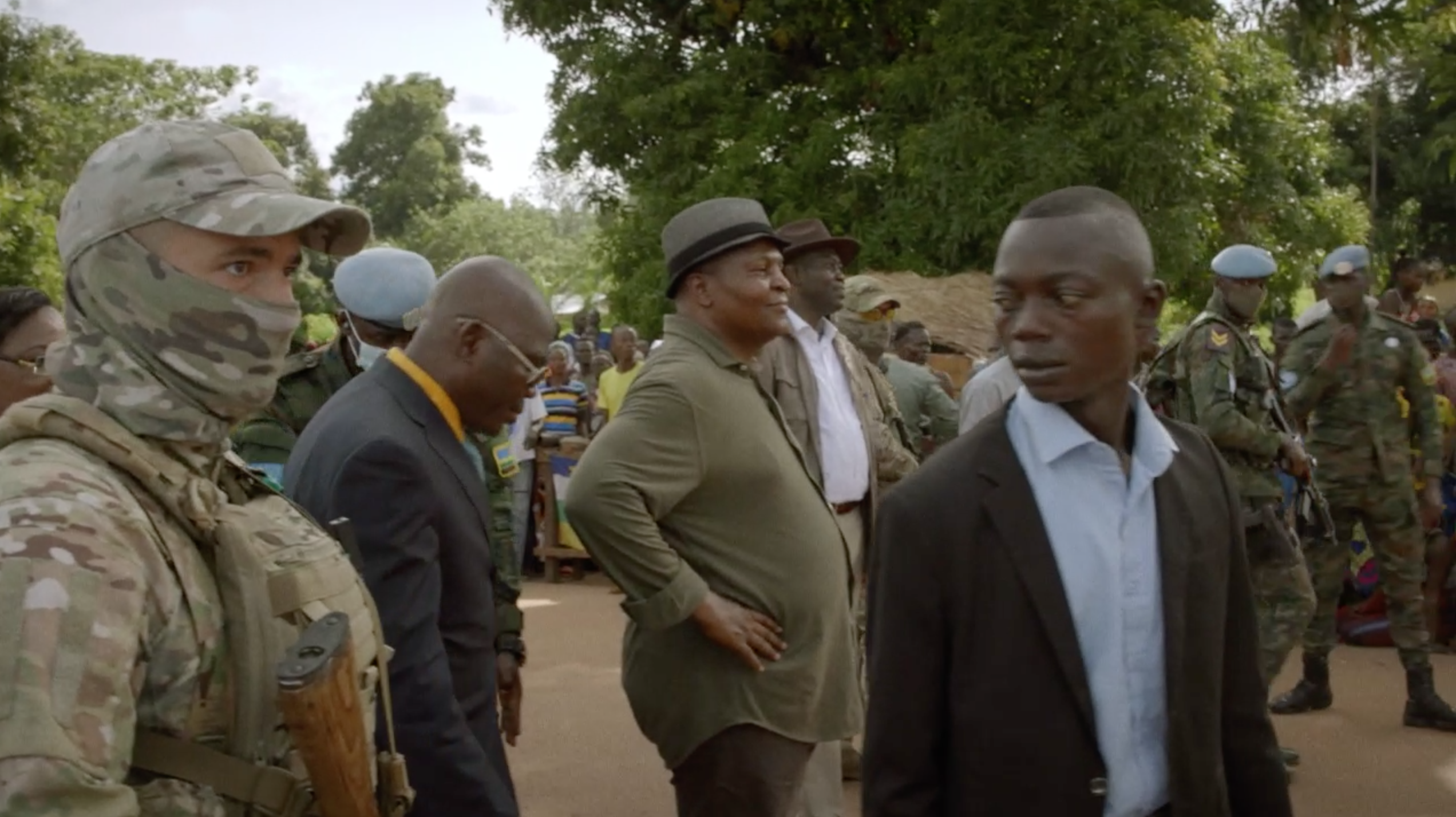 Bram ontmoet de Russische huurlingen net buiten de hoofdstad Bangui. Er wordt een triatlon gehouden en president Touadéra is er bij om de atleten aan te moedigen. De Russische lijfwachten van Wagner wijken geen moment van zijn zijde, hun gedichten bedekt met mondmaskers, tot vlak onder hun ogen.