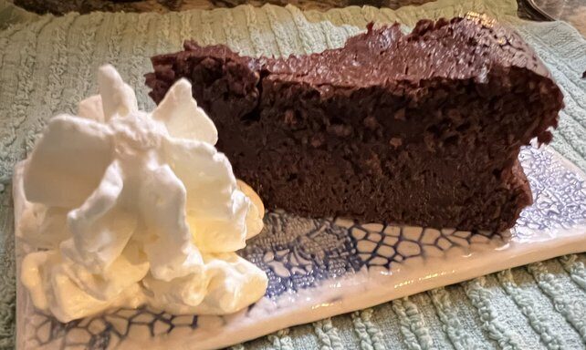 Beboter een taartvorm en bekleed eventueel met bakpapier. Vul de vorm met het beslag en bak in het midden van de oven. 25 minuten leidt voor Jary tot de ideale zachtheid van de ganache, maar dit is persoonlijk. Laat de taart afkoelen voordat u hem in puntjes verdeelt.