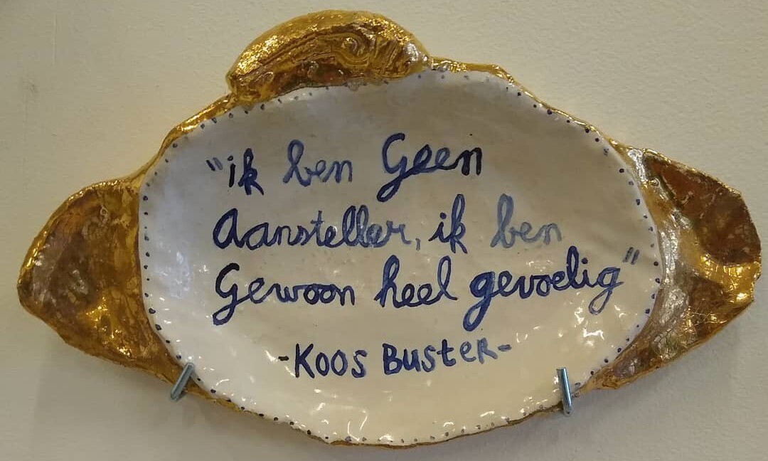Koos Buster (1991) stormde de Nederlandse Kunstwereld binnen in 2018 met de presentatie van het Grote Koos Buster Museum, zijn afstudeerpresentatie aan de Gerrit Rietveld Academie. Het zorgde voor een keramiekrenaissance in Nederland, en Buster werd beëdigd als Minister van Keramische Zaken. Zijn bekendste werken zijn een keramische waterkoeler, Canta, scooter en de serie sierborden van bijna alles wat hij niet leuk vindt. "Ik probeer met het mijn werk het leven leuker te maken", vertelt de kunstenaar in Kunststof.
