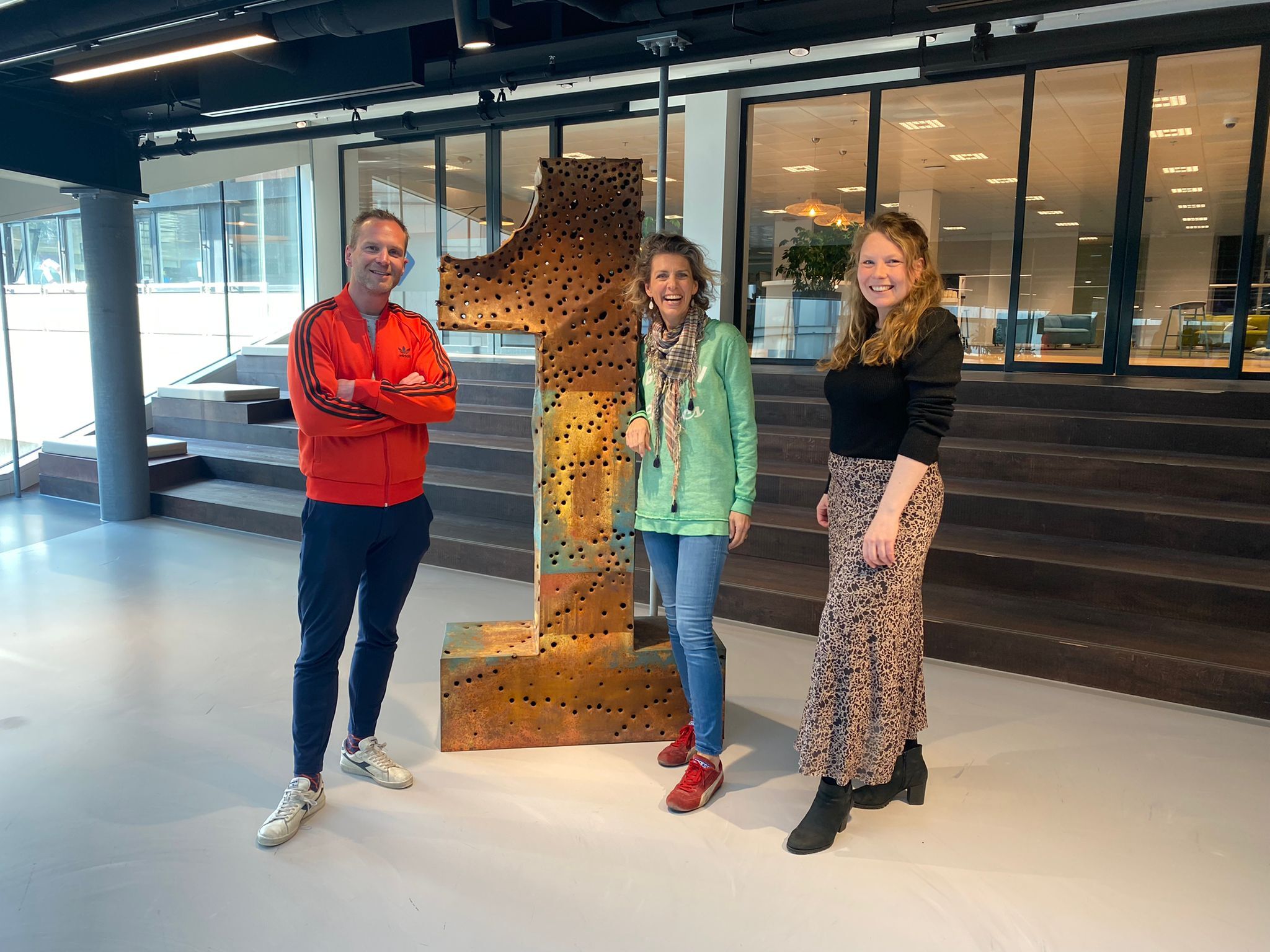 Nienke Wijnands (m) en Janneke van der Veer (r) met presentator Hans van der Steeg