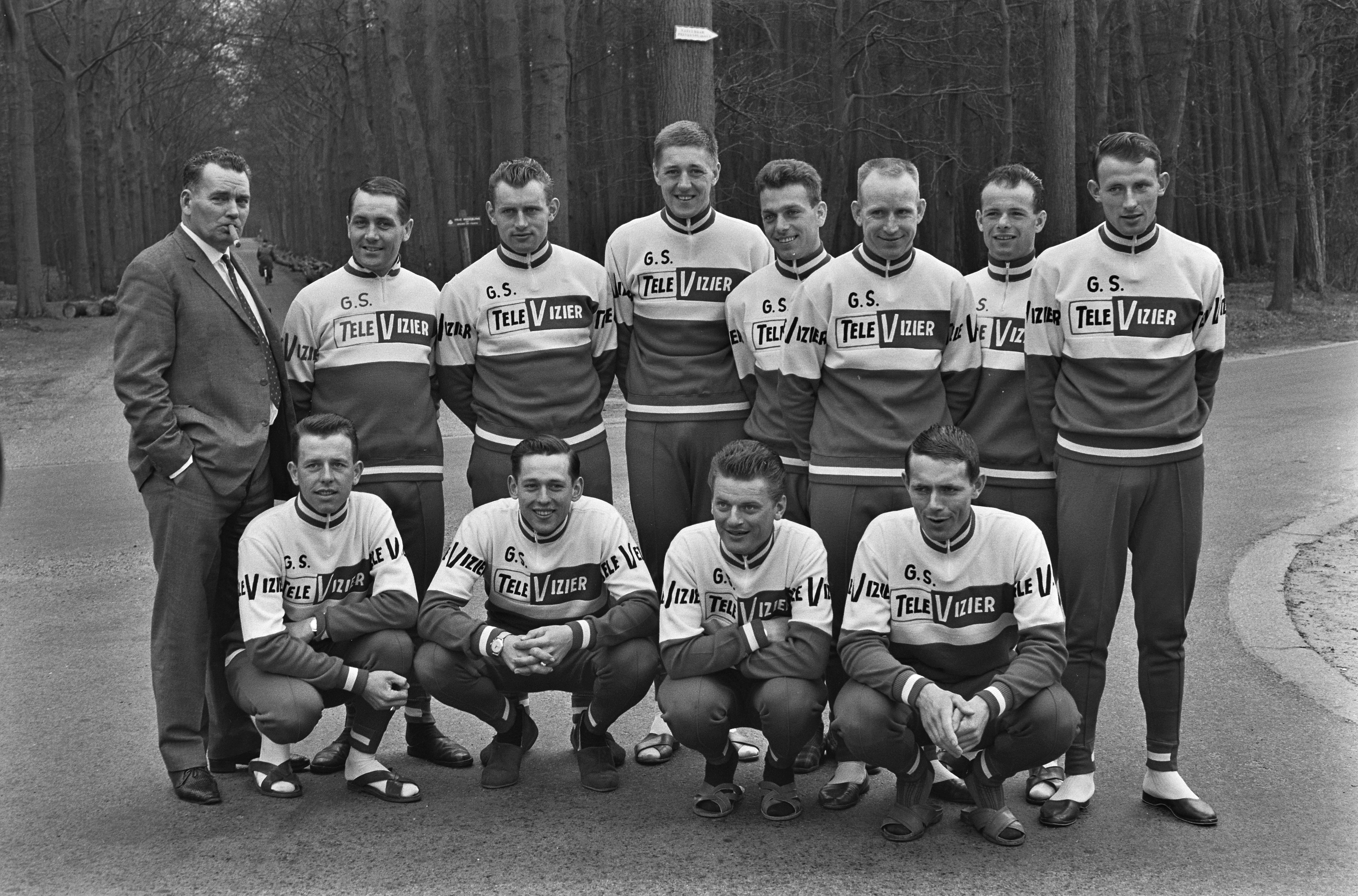 Piet van Est (Achterste rij, derde van rechts) met zijn wielerploeg in 1964