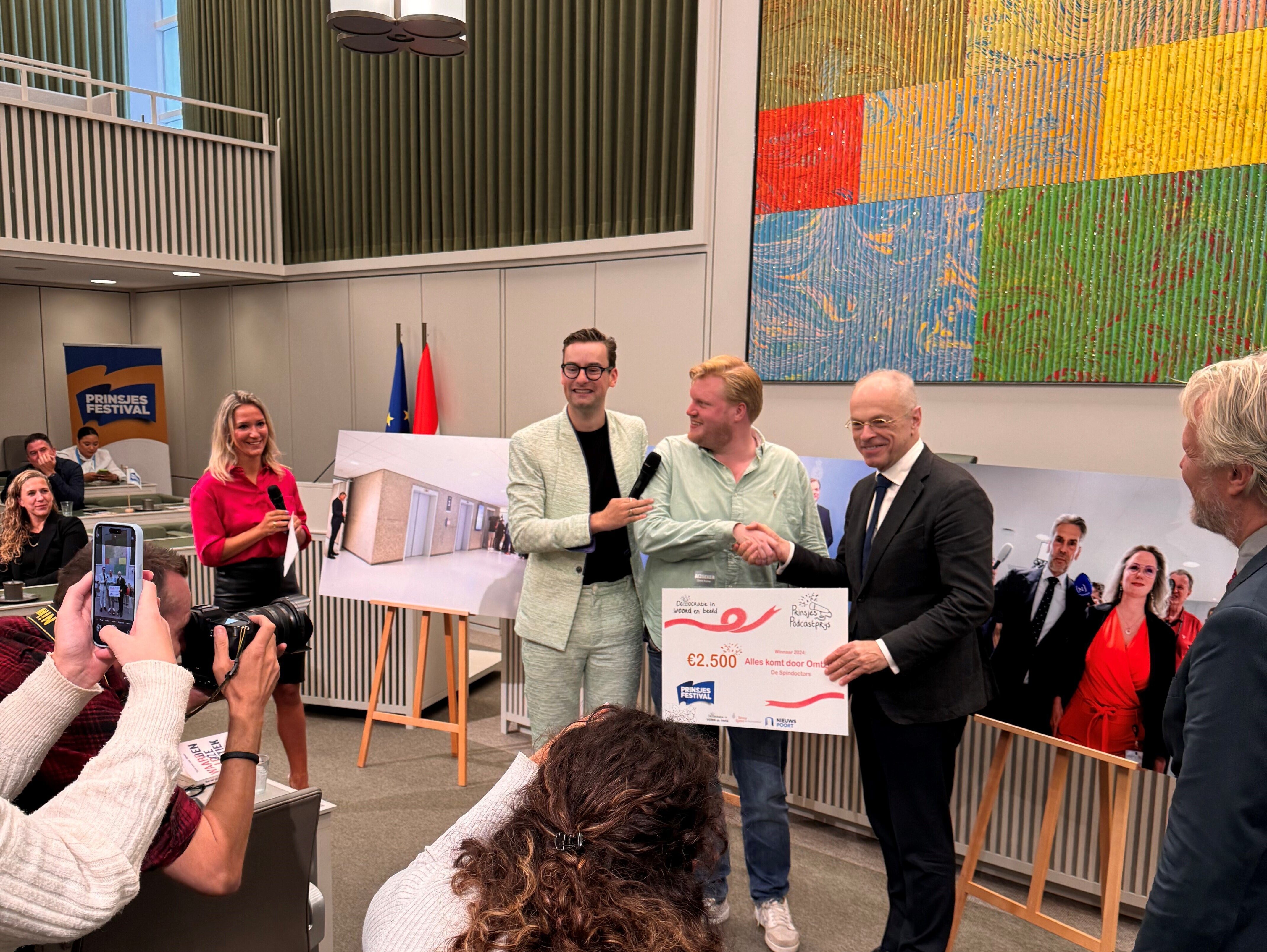 De Spindoctors-redacteur Guido van Dijk neemt PrinsjesPodcastprijs in ontvangst