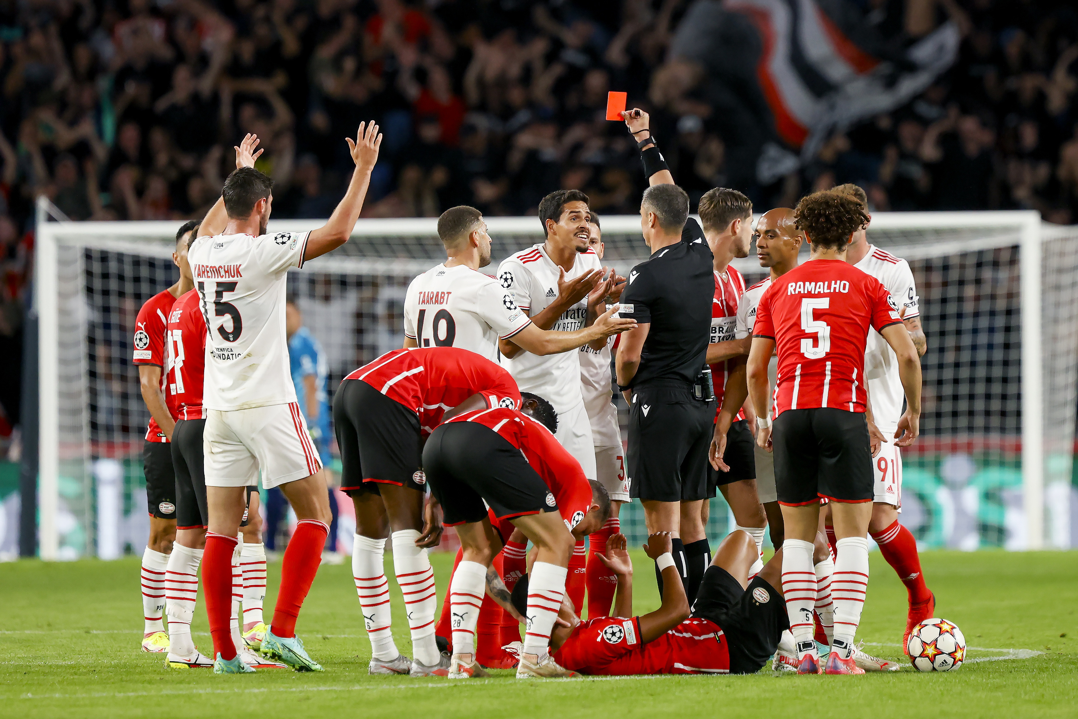 - Vroege rode kaart Benfica helpt niet; PSV grijpt naast Champions League