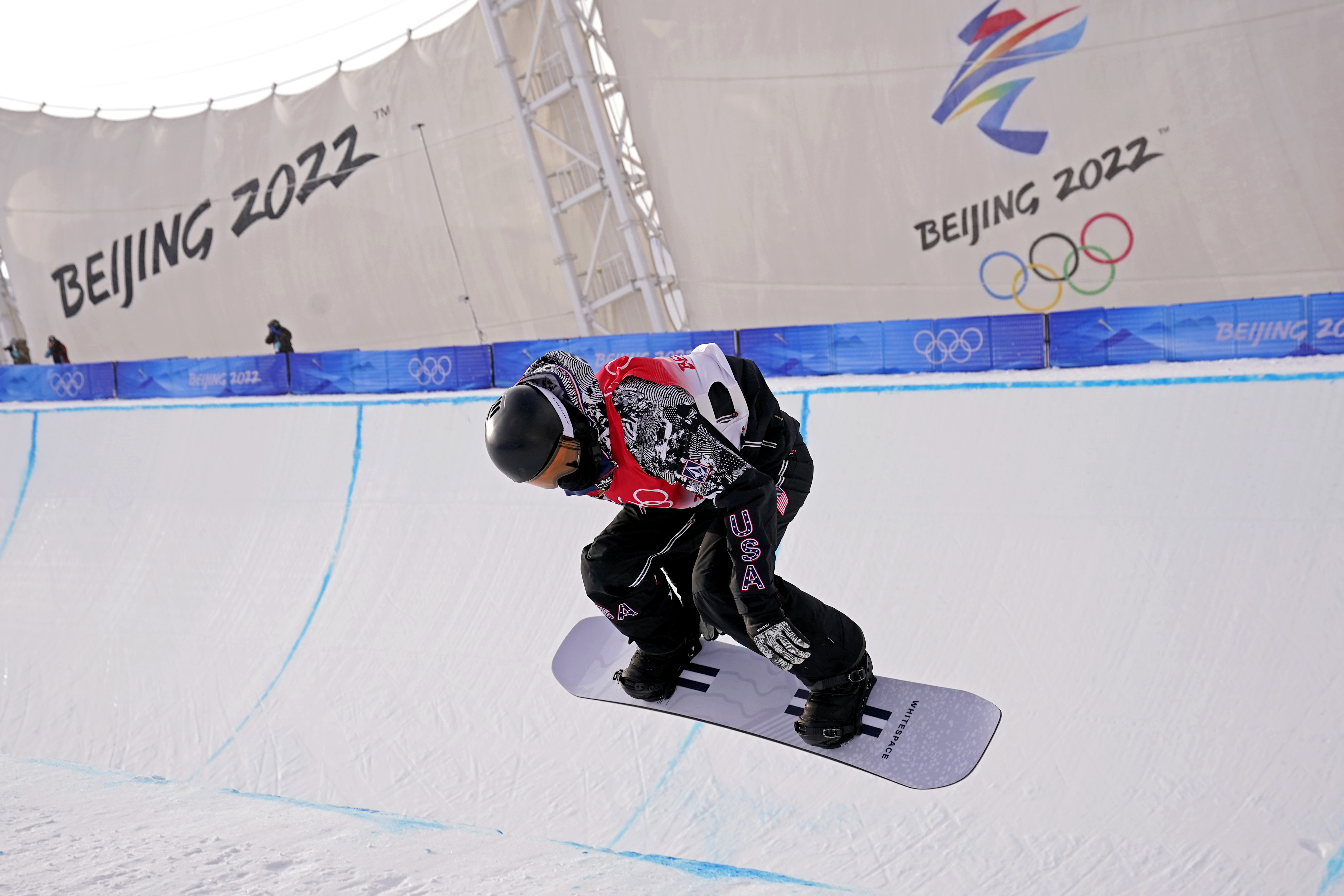Snowboardlegende Shaun White in actie tijdens zijn laatste Olympische Winterspelen in Peking.