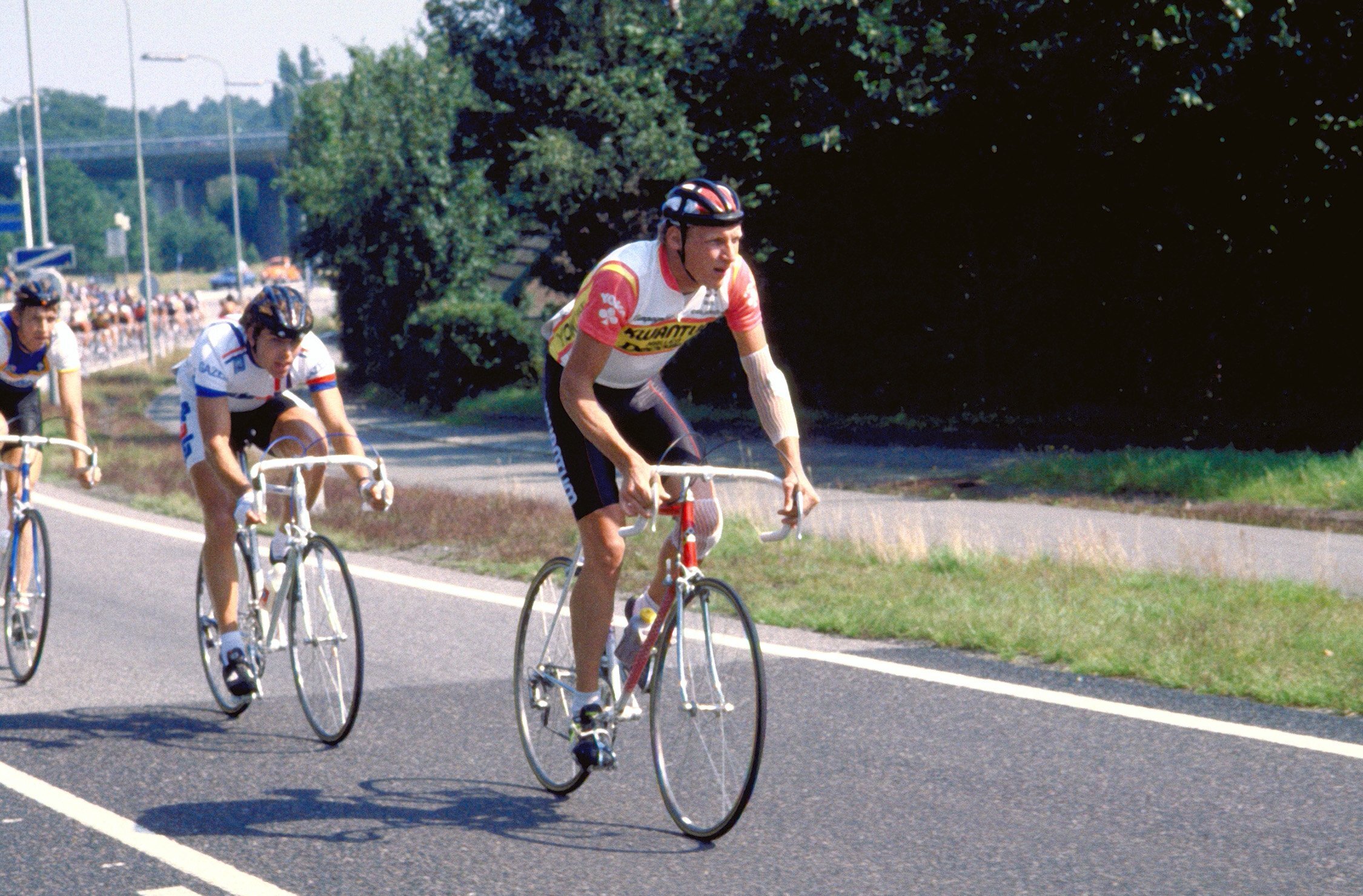 “Wie goed getraind is kan in zijn eentje 40 kilometer per uur halen op de fiets. Ik haal met mijn leeftijd nog een uur lang 30 kilometer. 32 maximaal. Dan houdt het wel op.” In het peloton worden snelheden van 60 kilometer per uur behaald. “Dan heb je geen plezier, hoor. Dat kan alleen omdat je van elkaar profiteert. Hoe dichterbij, hoe sneller je kan. Als een zwerm vogels. Hoe mager die konten ook zijn, je ziet de weg niet meer voor je.”
