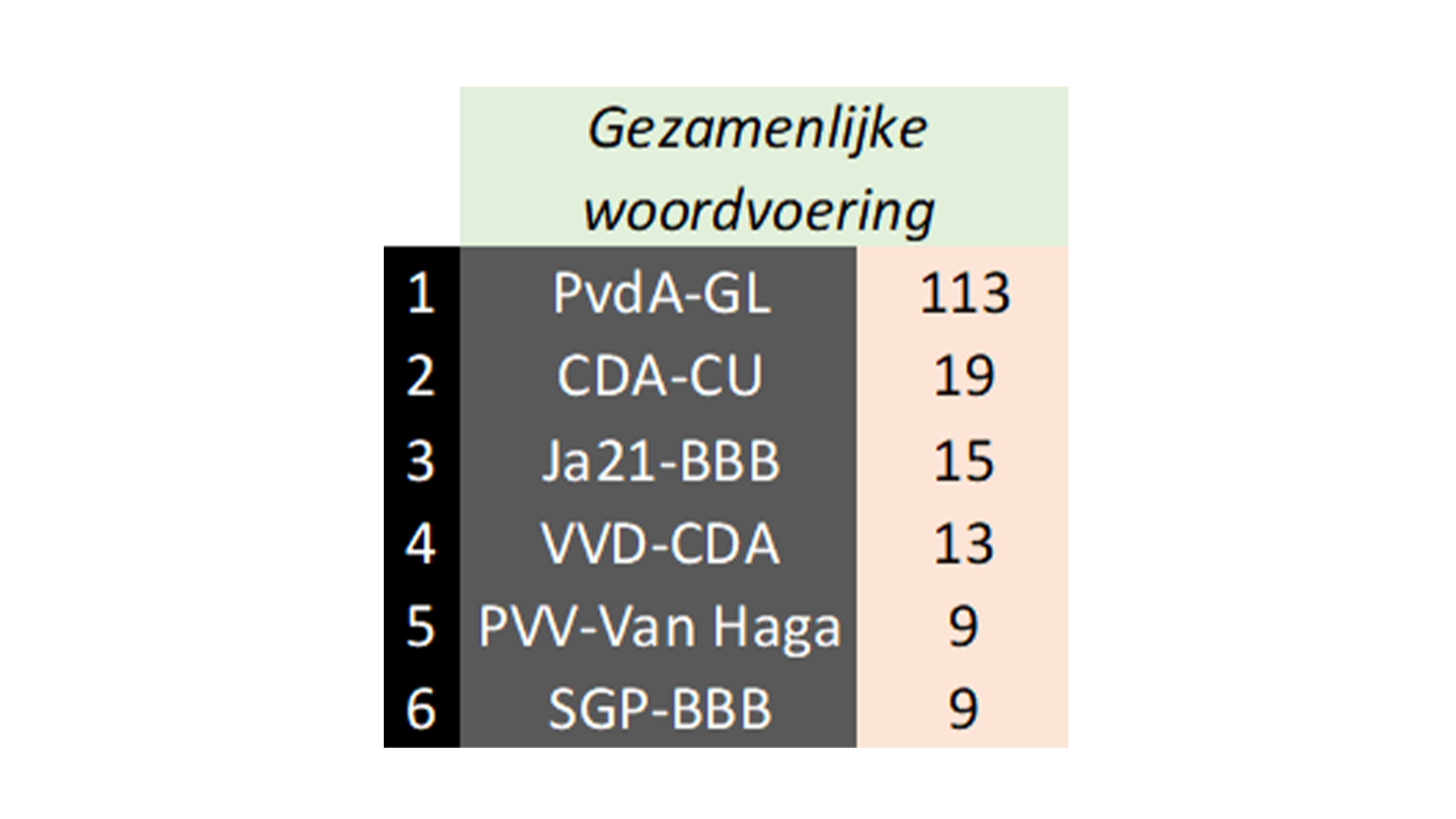 Meest voorkomende partijcombinaties bij gezamenlijke woordvoering